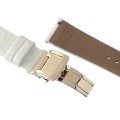 Esta bracelete de relógio Seiko é feita de couro e está fixada ao relógio através de pinos carregados por mola de liberação rápida. A bracelete tem uma largura de 18 mm e fecha através de fivela desdobrável. A bracelete não tem uma montagem a direito, o que significa que esta bracelete só é adequada para os relógios listados abaixo.