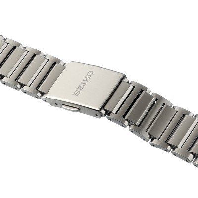 Esta bracelete de relógio Seiko é feita de titânio e está fixada ao relógio através de pinos de pressão. A bracelete tem uma largura de 25 mm e fecha através de fivela dobrável com botões de pressão. A bracelete não tem uma montagem a direito, o que significa que esta bracelete só é adequada para os relógios listados abaixo.