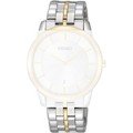 Esta bracelete de relógio Seiko é feita de aço inoxidável e está fixada ao relógio através de pinos de pressão. A bracelete tem uma largura de 19 mm e fecha através de fivela dobrável com botões de pressão. A bracelete não tem uma montagem a direito, o que significa que esta bracelete só é adequada para os relógios listados abaixo.