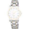 Esta bracelete de relógio Seiko é feita de aço inoxidável e está fixada ao relógio através de pinos de pressão. A bracelete tem uma largura de 14 mm e fecha através de fivela dobrável com botões de pressão. A bracelete não tem uma montagem a direito, o que significa que esta bracelete só é adequada para os relógios listados abaixo.