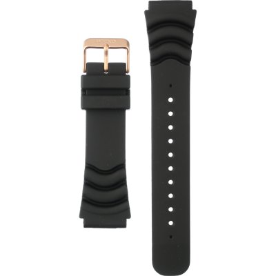 Esta bracelete de relógio Seiko é feita de silicone e está fixada ao relógio através de pinos de pressão. A bracelete tem uma largura de 26 mm e fecha através de fecho. A bracelete não tem uma montagem a direito, o que significa que esta bracelete só é adequada para os relógios listados abaixo.