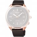 Esta bracelete de relógio Seiko é feita de couro e está fixada ao relógio através de pinos de pressão. A bracelete tem uma largura de 18 mm e fecha através de fecho. A bracelete tem uma montagem a direito, o que significa que esta bracelete é adequada para todos os relógios Seiko com montagem da bracelete a direito.