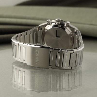 Este relógio Seiko tem uma caixa de Inox com um diâmetro de 40 mm e está equipado com uma bracelete de Inox. A caixa possui um movimento Seiko e o relógio tem um vidro Safira.