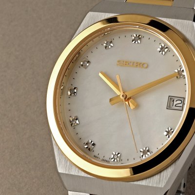 Este relógio Seiko tem uma caixa de Inox com um diâmetro de 34 mm e está equipado com uma bracelete de Inox. A caixa possui um movimento Seiko e o relógio tem um vidro Safira.