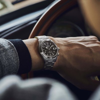 Este relógio Seiko tem uma caixa de Inox com um diâmetro de 39.5 mm e está equipado com uma bracelete de Inox. A caixa possui um movimento Seiko e o relógio tem um vidro Safira.