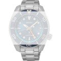 Esta bracelete de relógio Seiko é feita de aço inoxidável e está fixada ao relógio através de pinos de pressão. A bracelete tem uma largura de 20 mm e fecha através de fivela dobrável com botões de pressão e segurança. A bracelete não tem uma montagem a direito, o que significa que esta bracelete só é adequada para os relógios listados abaixo.