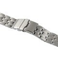 Esta bracelete de relógio Seiko é feita de aço inoxidável e está fixada ao relógio através de pinos de pressão. A bracelete tem uma largura de 20 mm e fecha através de fivela dobrável com botões de pressão e segurança. A bracelete não tem uma montagem a direito, o que significa que esta bracelete só é adequada para os relógios listados abaixo.