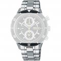 Esta bracelete de relógio Seiko é feita de aço inoxidável e está fixada ao relógio através de pinos de pressão. A bracelete tem uma largura de 20 mm e fecha através de fivela dobrável com botões de pressão. A bracelete não tem uma montagem a direito, o que significa que esta bracelete só é adequada para os relógios listados abaixo.