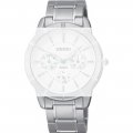 Esta bracelete de relógio Seiko é feita de aço inoxidável e está fixada ao relógio através de pinos de pressão. A bracelete tem uma largura de 17 mm e fecha através de fivela dobrável com botões de pressão. A bracelete não tem uma montagem a direito, o que significa que esta bracelete só é adequada para os relógios listados abaixo.
