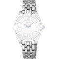 Esta bracelete de relógio Seiko é feita de aço inoxidável e está fixada ao relógio através de pinos de pressão. A bracelete tem uma largura de 14 mm e fecha através de fivela dobrável com botões de pressão. A bracelete não tem uma montagem a direito, o que significa que esta bracelete só é adequada para os relógios listados abaixo.