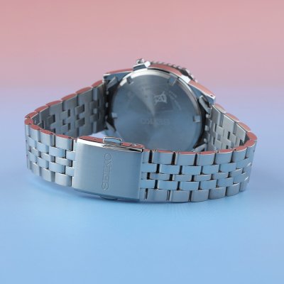 Este relógio Seiko tem uma caixa de Inox com um diâmetro de 37 mm e está equipado com uma bracelete de Inox. A caixa possui um movimento Seiko Instruments Inc. e o relógio tem um vidro Vidro hardlex.