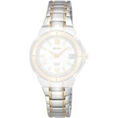 Esta bracelete de relógio Seiko é feita de aço inoxidável e está fixada ao relógio através de pino e tubo. A bracelete tem uma largura de 15 mm e fecha através de fivela dobrável com botões de pressão. A bracelete não tem uma montagem a direito, o que significa que esta bracelete só é adequada para os relógios listados abaixo.