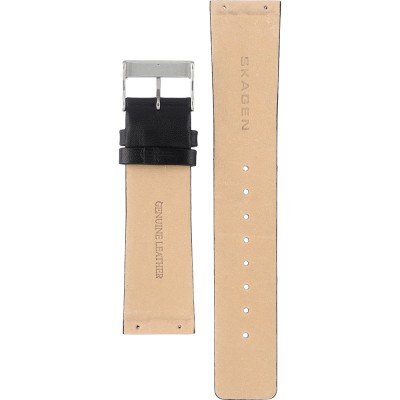 Esta bracelete de relógio Skagen é feita de couro e está fixada ao relógio através de parafusos. A bracelete tem uma largura de 22 mm e fecha através de fecho. A bracelete não tem uma montagem a direito, o que significa que esta bracelete só é adequada para os relógios listados abaixo.