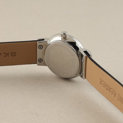 Este relógio Skagen tem uma caixa de Inox com um diâmetro de 22 mm e está equipado com uma bracelete de couro. A caixa possui um movimento Seiko Instruments Inc. e o relógio tem um vidro Mineral.