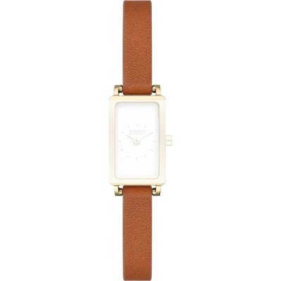 Esta bracelete de relógio Skagen é feita de couro e está fixada ao relógio através de pinos carregados por mola de liberação rápida. A bracelete tem uma largura de 8 mm e fecha através de fecho. A bracelete tem uma montagem a direito, o que significa que esta bracelete é adequada para todos os relógios Skagen com montagem da bracelete a direito.