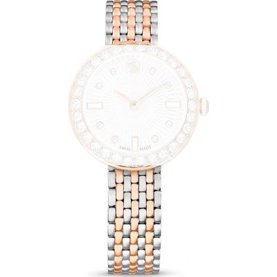 Esta bracelete de relógio Swarovski é feita de aço inoxidável e está fixada ao relógio através de pinos de pressão. A bracelete tem uma largura de 12 mm e fecha através de fivela butterfly com botões de pressão. A bracelete não tem uma montagem a direito, o que significa que esta bracelete só é adequada para os relógios listados abaixo.