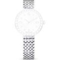 Esta bracelete de relógio Swarovski é feita de aço inoxidável e está fixada ao relógio através de pinos carregados por mola de liberação rápida. A bracelete tem uma largura de 12 mm e fecha através de fivela butterfly com botões de pressão. A bracelete não tem uma montagem a direito, o que significa que esta bracelete só é adequada para os relógios listados abaixo.