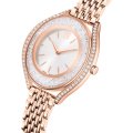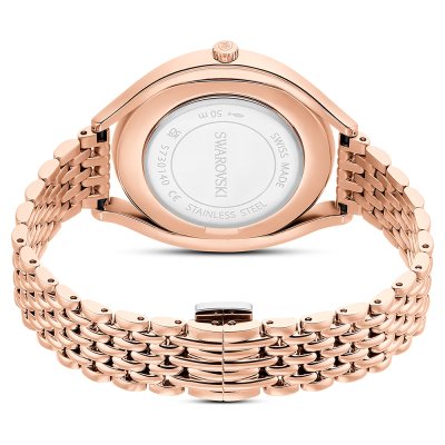 Este relógio Swarovski tem uma caixa de Inox com um diâmetro de 35.5 mm e está equipado com uma bracelete de Inox. A caixa possui um movimento Ronda e o relógio tem um vidro Mineral.