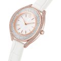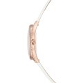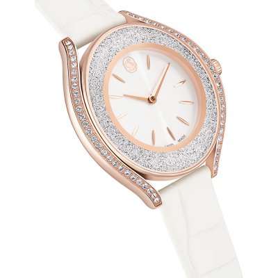 Este relógio Swarovski tem uma caixa de Inox com um diâmetro de 35.5 mm e está equipado com uma bracelete de couro. A caixa possui um movimento Ronda e o relógio tem um vidro Mineral.