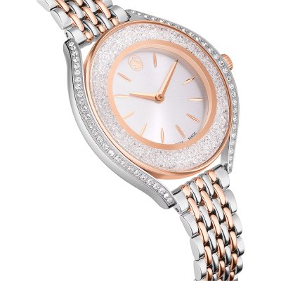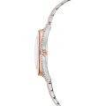 Este relógio Swarovski tem uma caixa de Inox com um diâmetro de 35.5 mm e está equipado com uma bracelete de Inox. A caixa possui um movimento Ronda e o relógio tem um vidro Mineral.