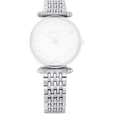 Esta bracelete de relógio Swarovski é feita de aço inoxidável e está fixada ao relógio através de pinos carregados por mola de liberação rápida. A bracelete tem uma largura de 16 mm e fecha através de fivela butterfly com botões de pressão. A bracelete não tem uma montagem a direito, o que significa que esta bracelete só é adequada para os relógios listados abaixo.