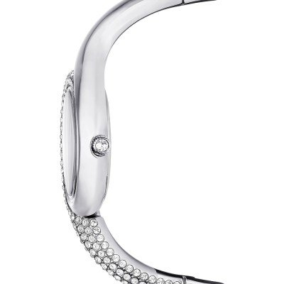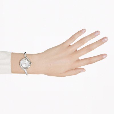 Este relógio Swarovski tem uma caixa de Inox com um diâmetro de 28 mm e está equipado com uma bracelete de Inox. A caixa possui um movimento Ronda e o relógio tem um vidro Mineral.