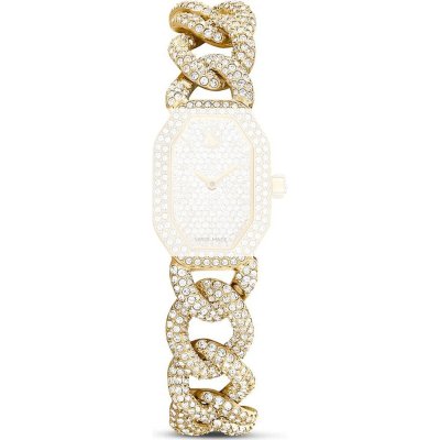 Esta bracelete de relógio Swarovski é feita de aço inoxidável e está fixada ao relógio através de nenhum. A bracelete tem uma largura de 14 mm e fecha através de fivela joalheria. A bracelete não tem uma montagem a direito, o que significa que esta bracelete só é adequada para os relógios listados abaixo.