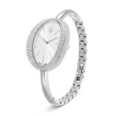 Este relógio Swarovski tem uma caixa de Inox com um diâmetro de 31 mm e está equipado com uma bracelete de Inox. A caixa possui um movimento Ronda e o relógio tem um vidro Mineral.