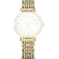 Esta bracelete de relógio Swarovski é feita de aço inoxidável e está fixada ao relógio através de pinos de pressão. A bracelete tem uma largura de 14 mm e fecha através de fivela butterfly invisível. A bracelete não tem uma montagem a direito, o que significa que esta bracelete só é adequada para os relógios listados abaixo.
