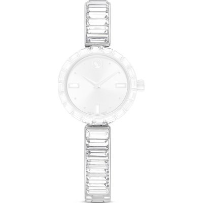 Esta bracelete de relógio Swarovski é feita de metal e está fixada ao relógio através de pinos em aço. A bracelete tem uma largura de 8 mm e fecha através de fivela joalheria. A bracelete não tem uma montagem a direito, o que significa que esta bracelete só é adequada para os relógios listados abaixo.