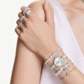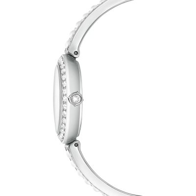 Este relógio Swarovski tem uma caixa de Inox com um diâmetro de 26 mm e está equipado com uma bracelete de Inox. A caixa possui um movimento Ronda e o relógio tem um vidro Mineral.
