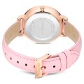 Este relógio Swarovski tem uma caixa de Inox com um diâmetro de 35 mm e está equipado com uma bracelete de couro. A caixa possui um movimento Ronda e o relógio tem um vidro Mineral.