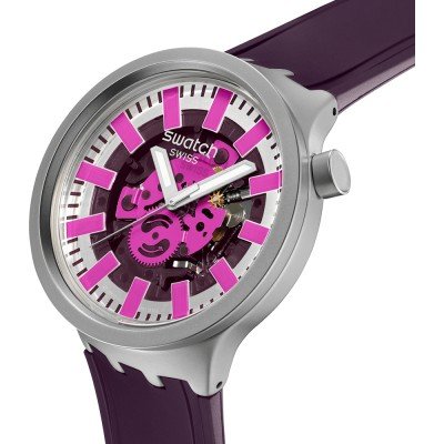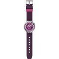 Este relógio Swatch tem uma caixa de Inox com um diâmetro de 47 mm e está equipado com uma bracelete de borracha. A caixa possui um movimento ETA e o relógio tem um vidro Acrílico.