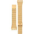 Esta bracelete de relógio Swatch é feita de aço inoxidável e está fixada ao relógio através de pinos em aço. A bracelete tem uma largura de 17 mm e fecha através de fecho milanese. A bracelete não tem uma montagem a direito, o que significa que esta bracelete só é adequada para os relógios listados abaixo.