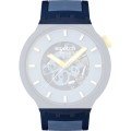 Este relógio Swatch tem uma caixa de Plástico de origem biológica com um diâmetro de 47 mm e está equipado com uma bracelete de borracha. A caixa possui um movimento ETA e o relógio tem um vidro Acrílico.