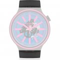 Esta bracelete de relógio Swatch é feita de silicone e está fixada ao relógio através de pinos em aço. A bracelete tem uma largura de 19.7 mm e fecha através de fecho. A bracelete não tem uma montagem a direito, o que significa que esta bracelete só é adequada para os relógios listados abaixo.