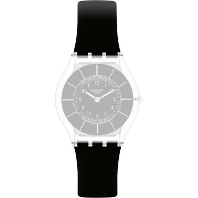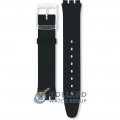 Esta bracelete de relógio Swatch é feita de silicone e está fixada ao relógio através de pinos em aço. A bracelete tem uma largura de 16.5 mm e fecha através de fecho. A bracelete não tem uma montagem a direito, o que significa que esta bracelete só é adequada para os relógios listados abaixo.