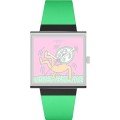 Esta bracelete de relógio Swatch é feita de silicone e está fixada ao relógio através de pinos em aço. A bracelete tem uma largura de 21 mm e fecha através de fecho. A bracelete não tem uma montagem a direito, o que significa que esta bracelete só é adequada para os relógios listados abaixo.