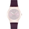 Esta bracelete de relógio Swatch é feita de silicone e está fixada ao relógio através de pinos em aço. A bracelete tem uma largura de 19.6 mm e fecha através de fecho. A bracelete não tem uma montagem a direito, o que significa que esta bracelete só é adequada para os relógios listados abaixo.