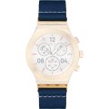 Esta bracelete de relógio Swatch é feita de tecido e está fixada ao relógio através de pinos em aço. A bracelete tem uma largura de 21 mm e fecha através de fecho. A bracelete não tem uma montagem a direito, o que significa que esta bracelete só é adequada para os relógios listados abaixo.