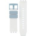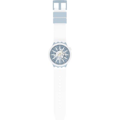 Este relógio Swatch tem uma caixa de Biocerâmica com um diâmetro de 47 mm e está equipado com uma bracelete de borracha. A caixa possui um movimento ETA e o relógio tem um vidro Acrílico.