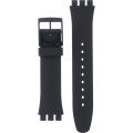 Esta bracelete de relógio Swatch é feita de silicone e está fixada ao relógio através de pinos em aço. A bracelete tem uma largura de 19.7 mm e fecha através de fecho. A bracelete não tem uma montagem a direito, o que significa que esta bracelete só é adequada para os relógios listados abaixo.