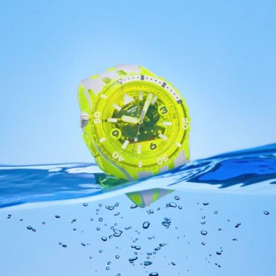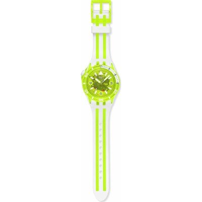 Este relógio Swatch tem uma caixa de Plástico de origem biológica com um diâmetro de 44 mm e está equipado com uma bracelete de borracha. A caixa possui um movimento ETA e o relógio tem um vidro Acrílico.