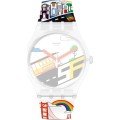 Esta bracelete de relógio Swatch é feita de silicone e está fixada ao relógio através de pinos em aço. A bracelete tem uma largura de 19.7 mm e fecha através de fecho. A bracelete não tem uma montagem a direito, o que significa que esta bracelete só é adequada para os relógios listados abaixo.