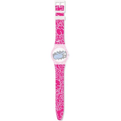 Esta bracelete de relógio Swatch é feita de silicone e está fixada ao relógio através de pinos em aço. A bracelete tem uma largura de 17 mm e fecha através de fecho. A bracelete não tem uma montagem a direito, o que significa que esta bracelete só é adequada para os relógios listados abaixo.