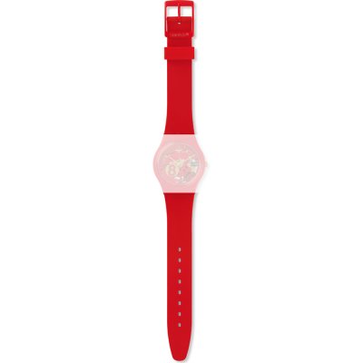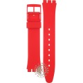 Esta bracelete de relógio Swatch é feita de silicone e está fixada ao relógio através de pinos em aço. A bracelete tem uma largura de 17 mm e fecha através de fecho. A bracelete não tem uma montagem a direito, o que significa que esta bracelete só é adequada para os relógios listados abaixo.