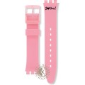 Esta bracelete de relógio Swatch é feita de silicone e está fixada ao relógio através de pinos em aço. A bracelete tem uma largura de 17 mm e fecha através de fecho. A bracelete não tem uma montagem a direito, o que significa que esta bracelete só é adequada para os relógios listados abaixo.