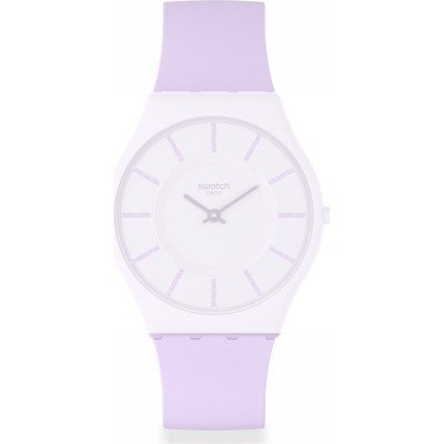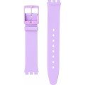 Esta bracelete de relógio Swatch é feita de silicone e está fixada ao relógio através de pinos em aço. A bracelete tem uma largura de 16.5 mm e fecha através de fecho. A bracelete não tem uma montagem a direito, o que significa que esta bracelete só é adequada para os relógios listados abaixo.