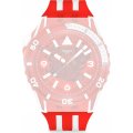 Esta bracelete de relógio Swatch é feita de silicone e está fixada ao relógio através de pinos em aço. A bracelete tem uma largura de 26 mm e fecha através de fecho. A bracelete não tem uma montagem a direito, o que significa que esta bracelete só é adequada para os relógios listados abaixo.