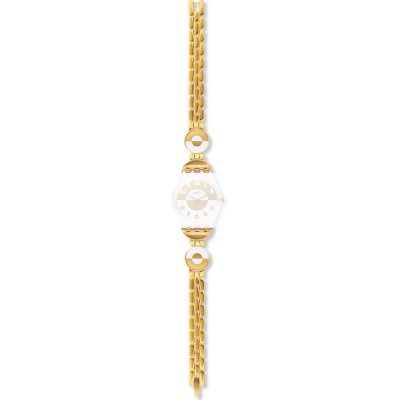 Esta bracelete de relógio Swatch é feita de aço inoxidável e está fixada ao relógio através de pinos em aço. A bracelete tem uma largura de 12 mm e fecha através de fivela joalheria. A bracelete não tem uma montagem a direito, o que significa que esta bracelete só é adequada para os relógios listados abaixo.